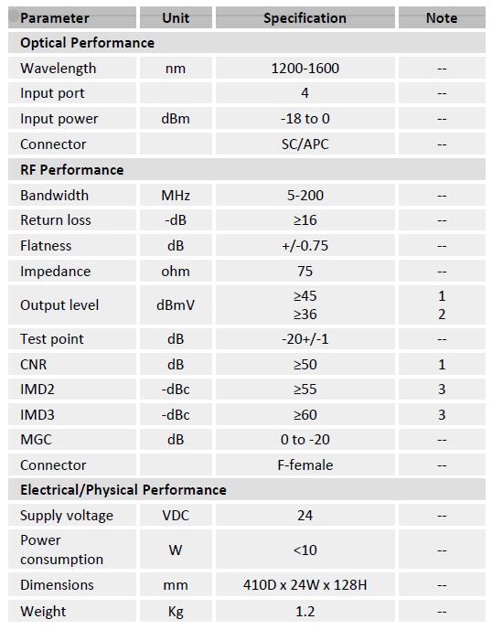 2. -10~0dBm optical input,OMI=16%,AGC setting